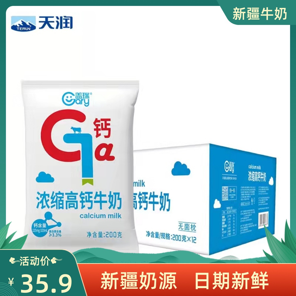 新疆天潤ゲイリー濃縮高カルシウム牛乳全脂肪調整牛乳子供の朝食 200 ミリリットル * 12 袋食物繊維