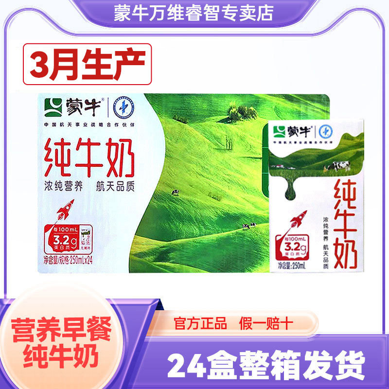 3月産蒙牛滅菌ブリック純乳250mL*24箱フルボックスバッチ栄養学生朝食ドリンクミルク