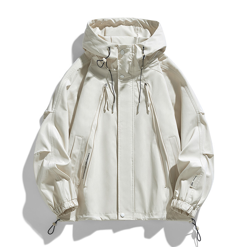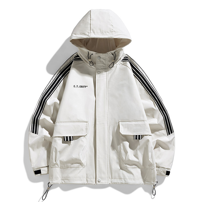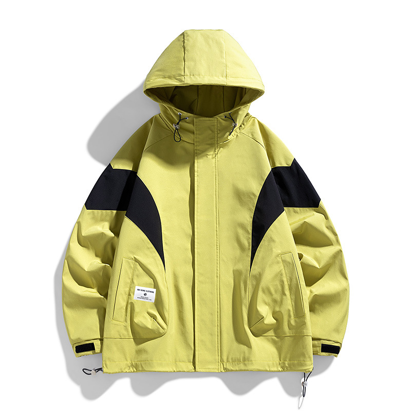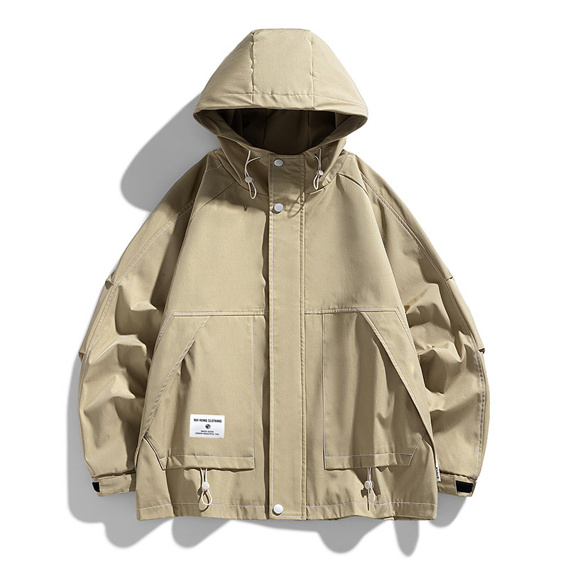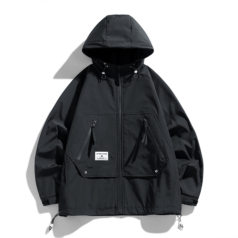 M-8XLフード付きジャケット男性春秋新作insファッションブランド純色防風防水ジャケット