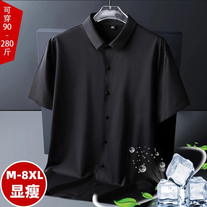 M-8XLナイロン氷糸無痕半袖シャツ男性ビジネスに肥料を加えて、アイロンをかけないでしわに抵抗して純色を身につける