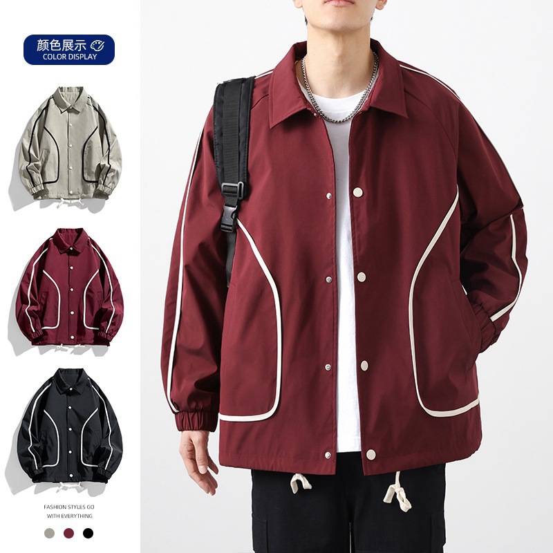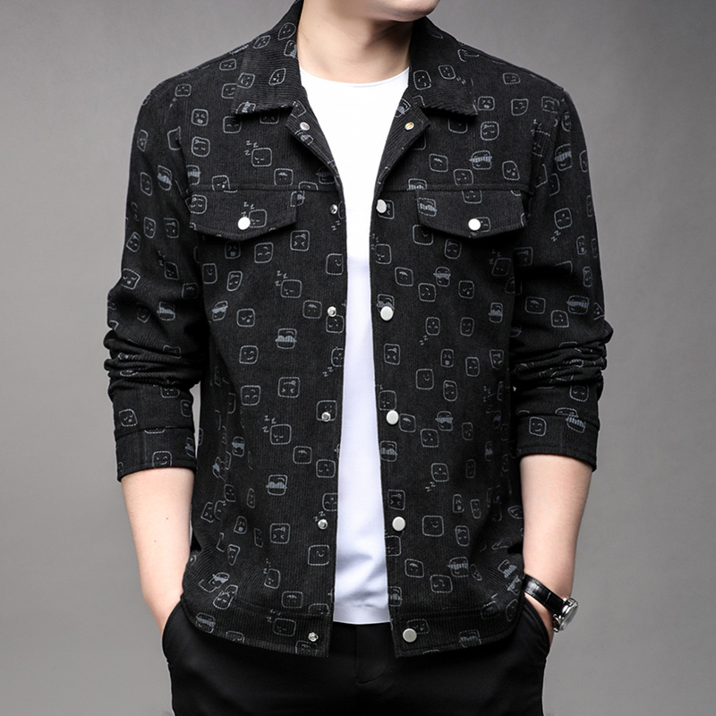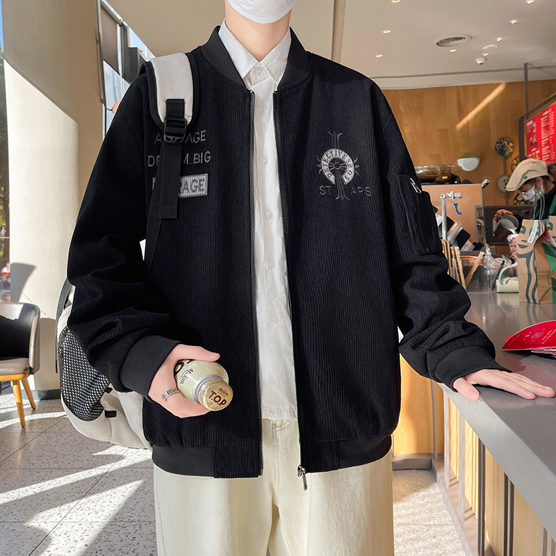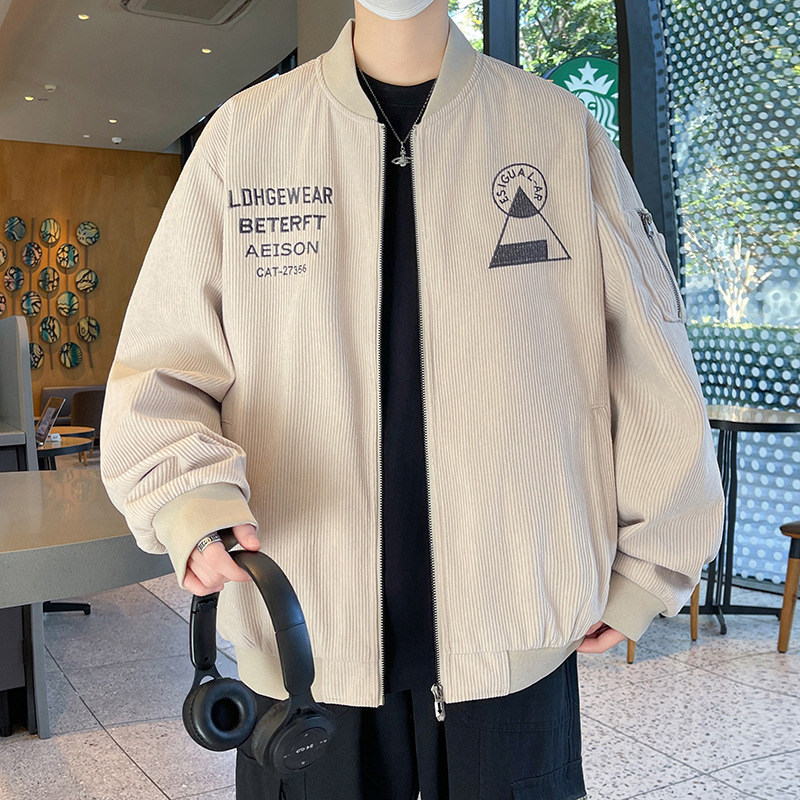 コーデュロイジャケットメンズ春秋新作韓国版プリントコートトレンドゆるいカジュアルメンズ野球襟ジャケット