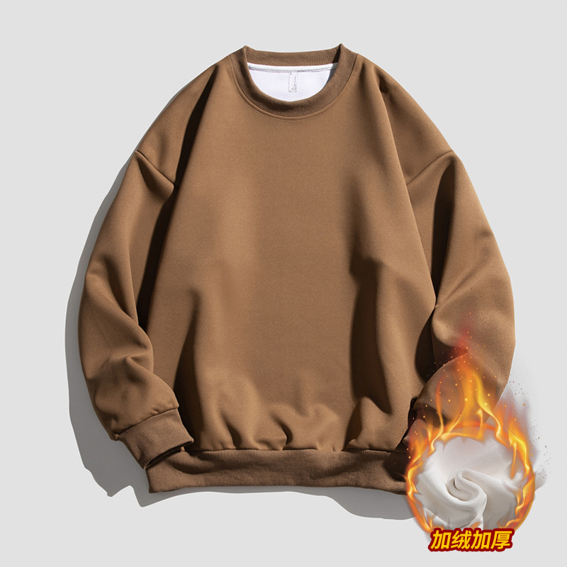 男性のベルベットの秋冬の新型500グラムの重いポンドの長袖のtシャツの丸首の厚い上着は2つの開きのtシャツの潮があります。