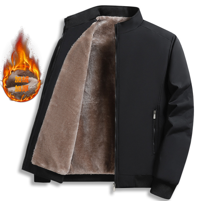 ベルベットのジャケット男性秋冬の新しいお父さんの中高年の暖かい純色の厚いスタンドカラーのビジネスの大きいサイズのコートのファッション