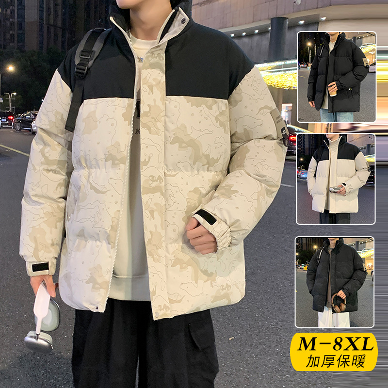 M-8XLの大きいサイズの冬の綿服の男性のスタンドカラーのパン服のゆったりした迷彩の綿入れの太った男のコート