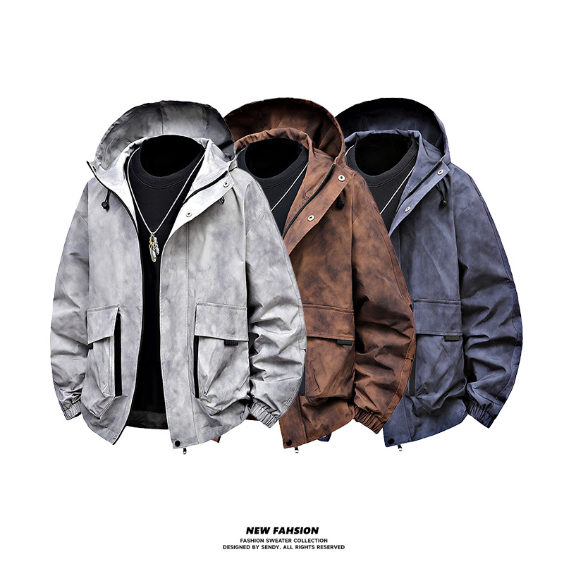 男性突撃服フード付き防風ジャケット屋外ファッションブランド登山服春秋新型スポーツカジュアルゆったりコート