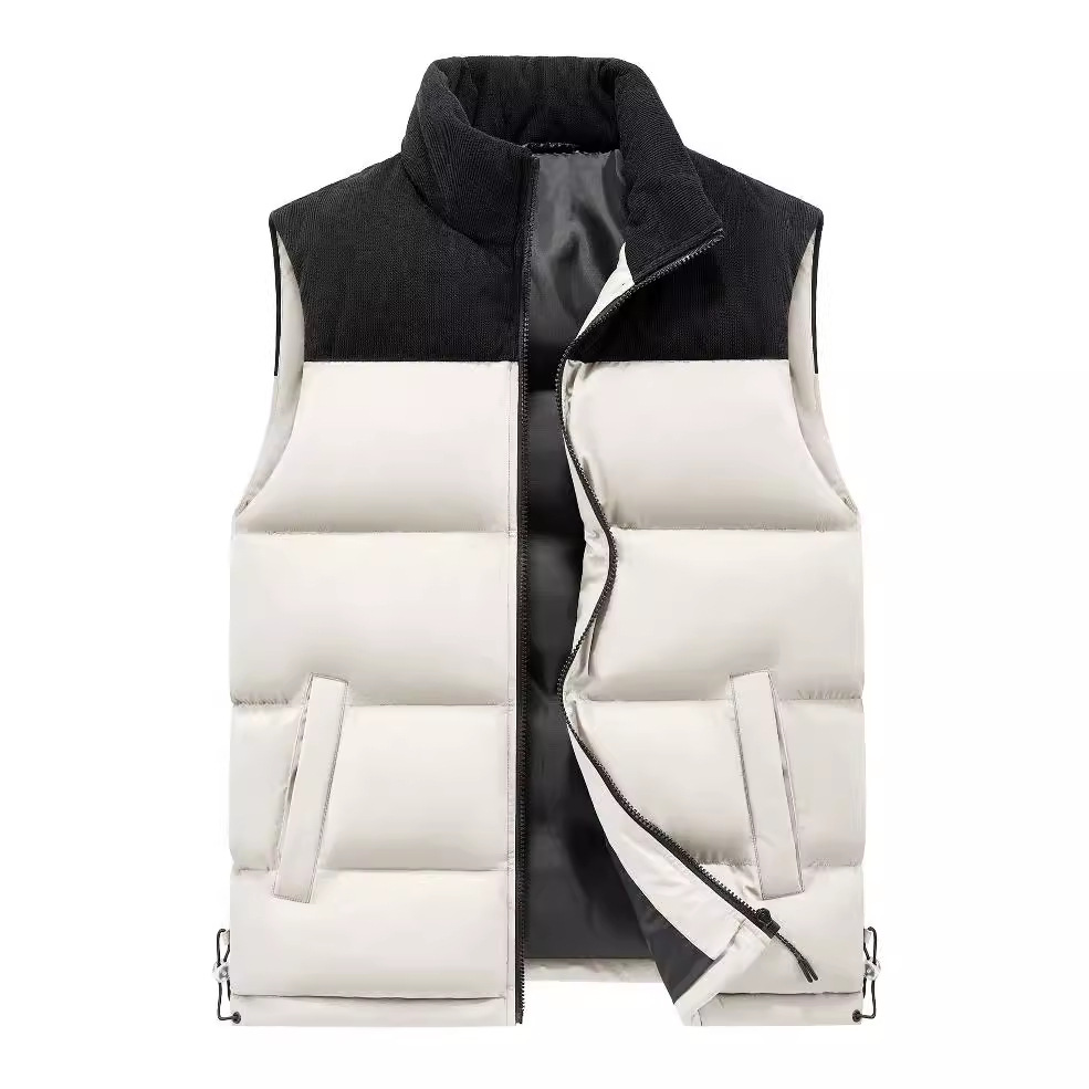 綿馬甲の男性のカジュアルな色合わせのカンカンの肩のコート秋冬のカップルの新型は二開で厚くて暖かいゆったりしたコートを厚くすることができます。