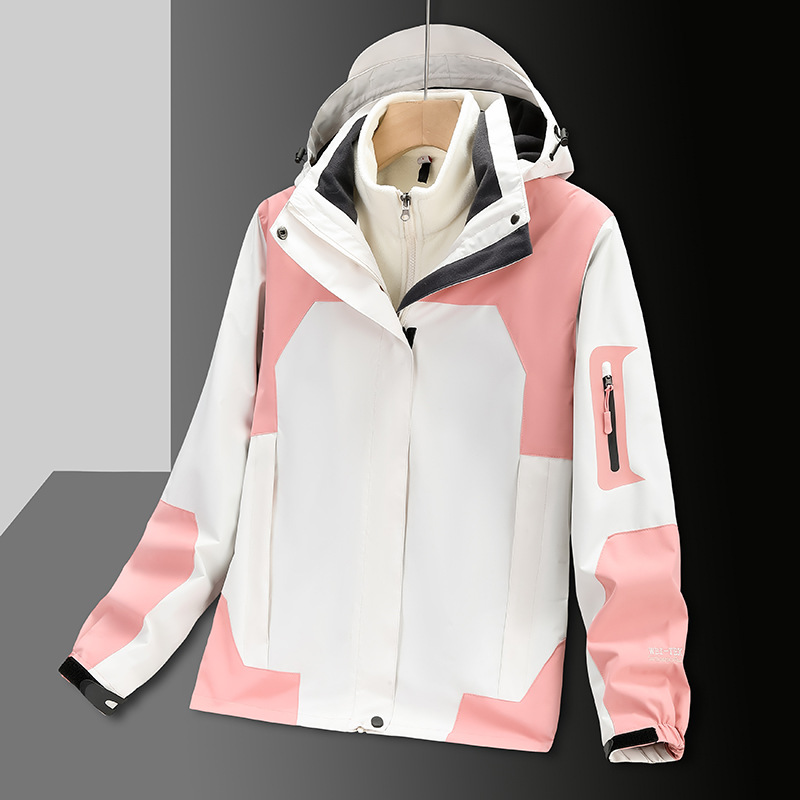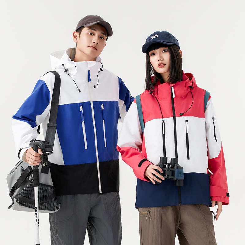 男性の爆発的な突撃服の色合わせ三合一二点セットのジャケットカップルの登山服は、内胆と帽子のコートを厚くしている
