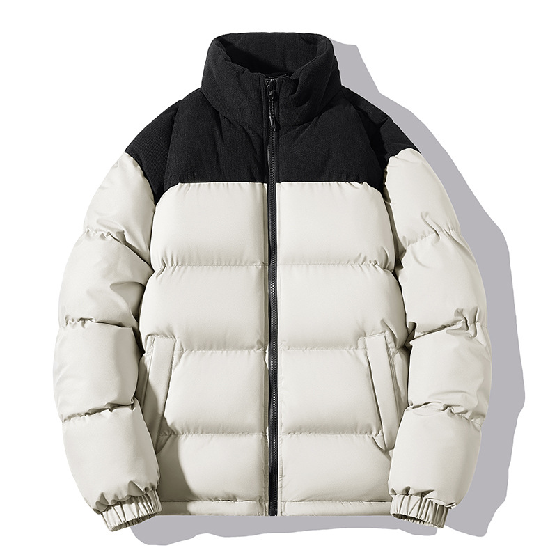 男性の起爆綿服カップルのスタンドカラーは保温綿入れのファッションカードを厚くして、色を合わせて運動レジャーコートを作ります。