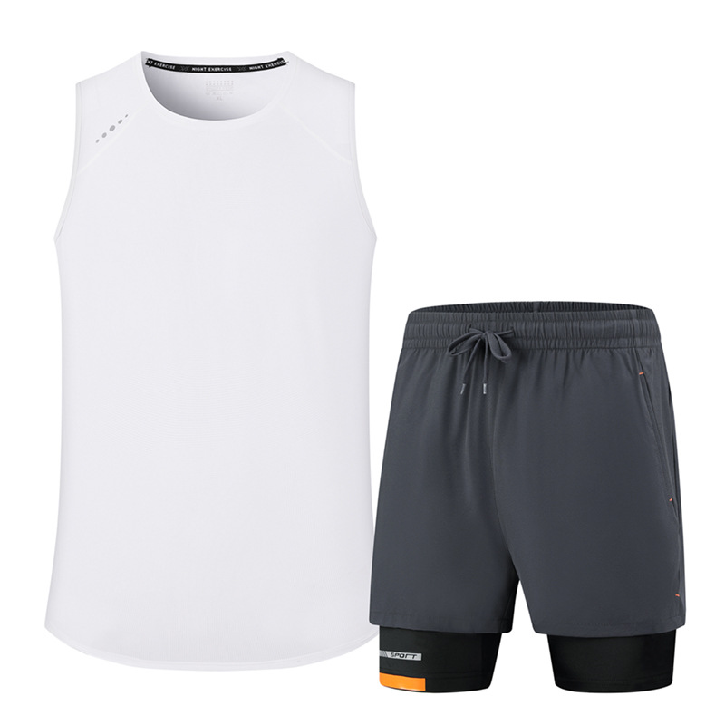 カップルスーツ通気性氷糸スーツ男性女性スポーツスーツ団体服二開ベストパンツ二点セット