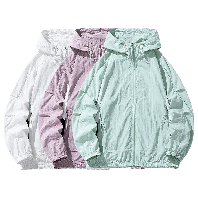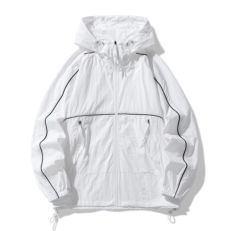 日焼け止め服の男性は国境を越えて対外貿易を提供して、夏の純色のゆるい防水通気性のフードコートを提供しています