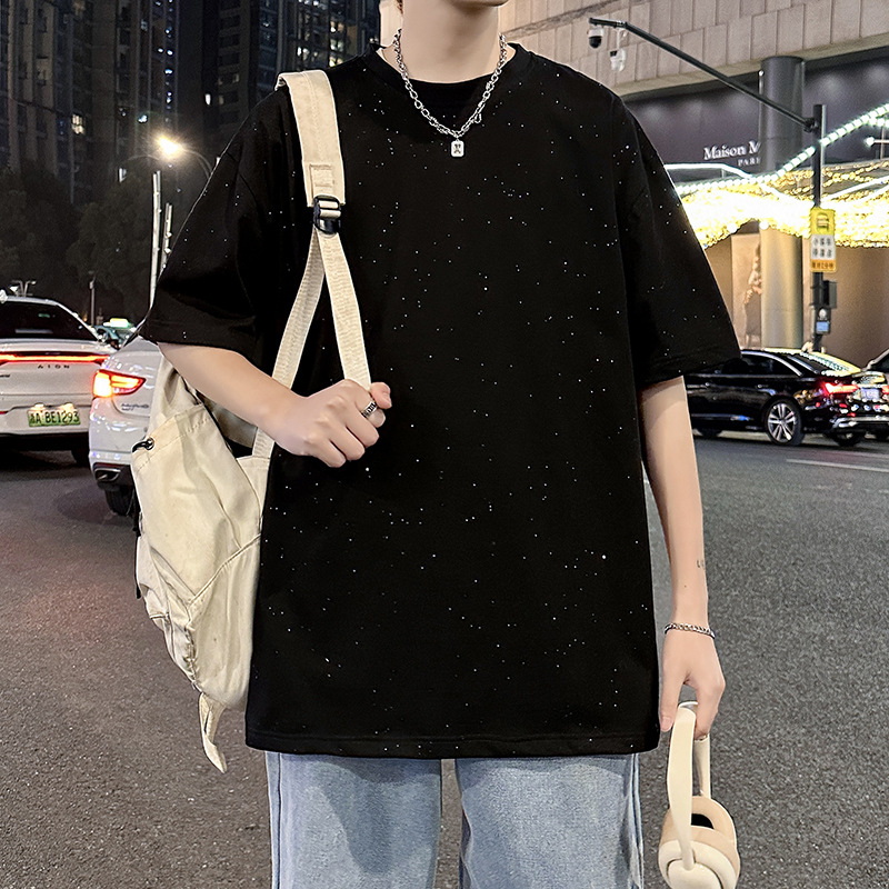 黒い丸首半袖tシャツ男性の新しい満天の星がカップルのins潮牌のゆるい服を飾っている
