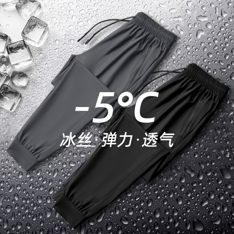 M-6XLの大きいサイズの氷のズボンの男性の高弾の束足のズボンの夏の新型のエアコンのズボンの大きいサイズの屋外のレジャーのズボン