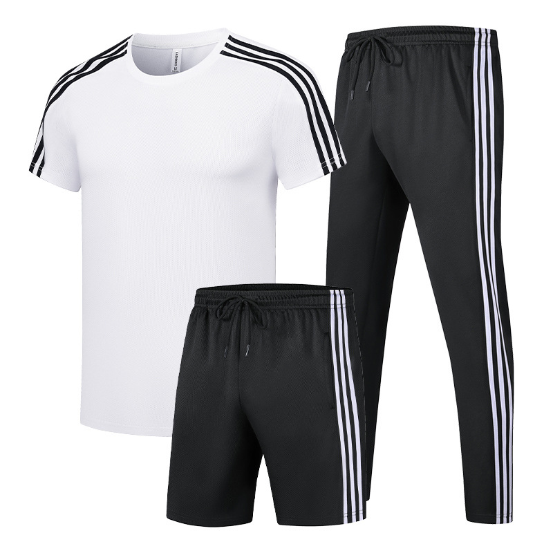 男性レジャースポーツ三点セット夏の新型吸汗速乾半ズボン半袖大サイズ三条棒セット