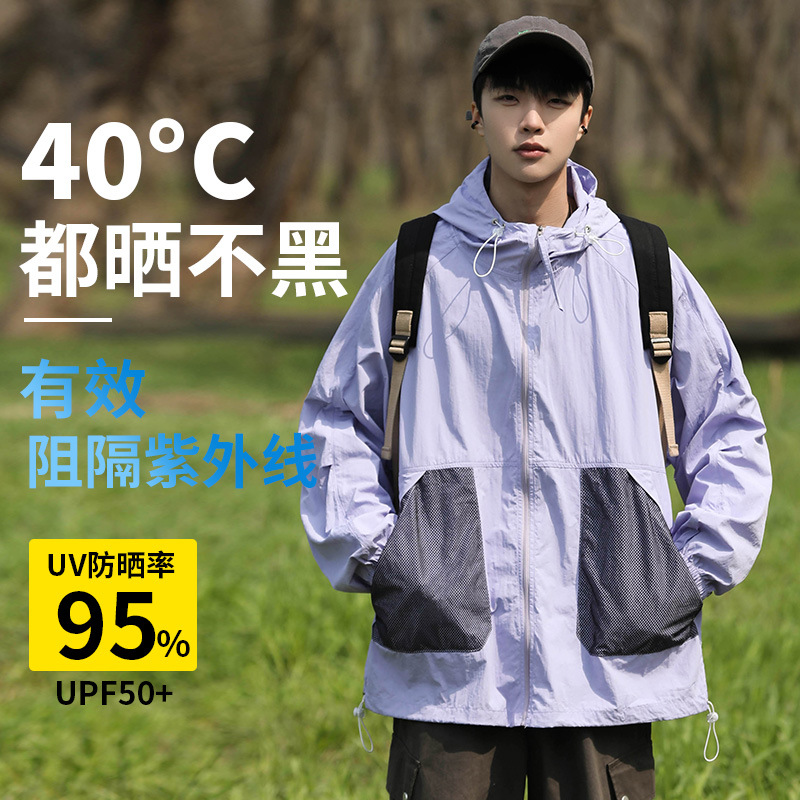 UPF50日焼け止め服男性クロスボーダー対外貿易供給ビッグサイズ皮膚服夏防水通気フード付きコートブーム