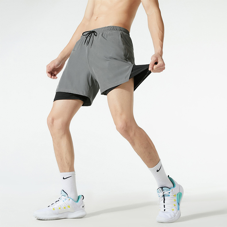 偽2枚のフィットネスパンツ男性カジュアルパンツランニングパンツ夏の新型弾力速乾多機能タイツ