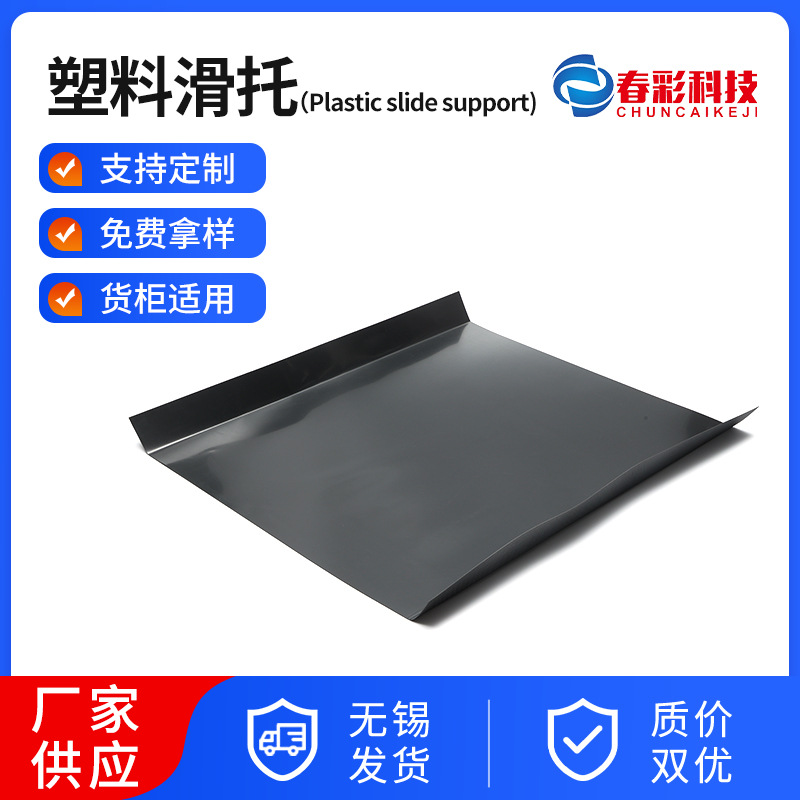 プラスチックスライドトレイ ブラック - 片面折りたたみ - 角が切られていない 工場用プッシャーは耐摩耗性の厚いプラスチックスライドトレイを使用しています