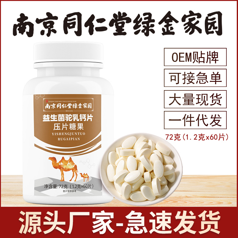 益生菌ラクダ乳カルシウム片南京同仁堂緑金家の中で高齢の成人児童がミルクを噛む