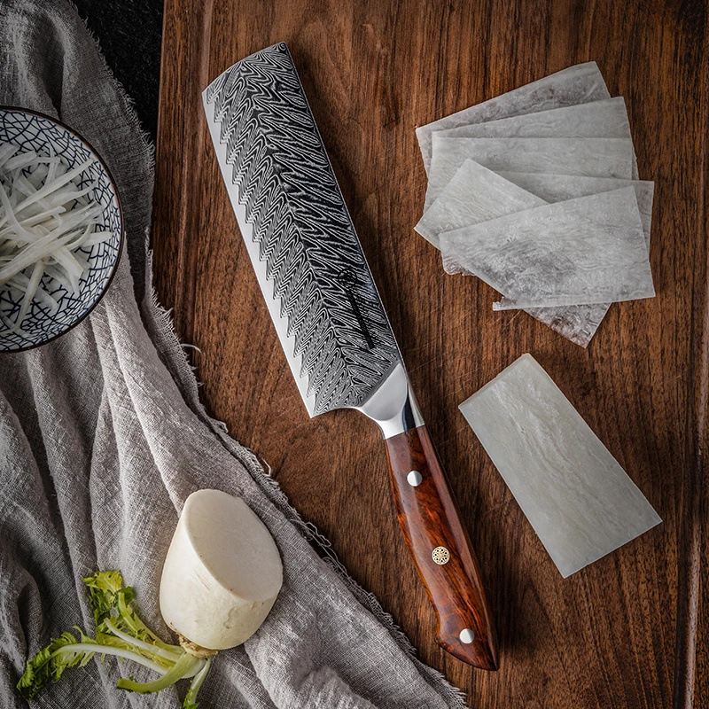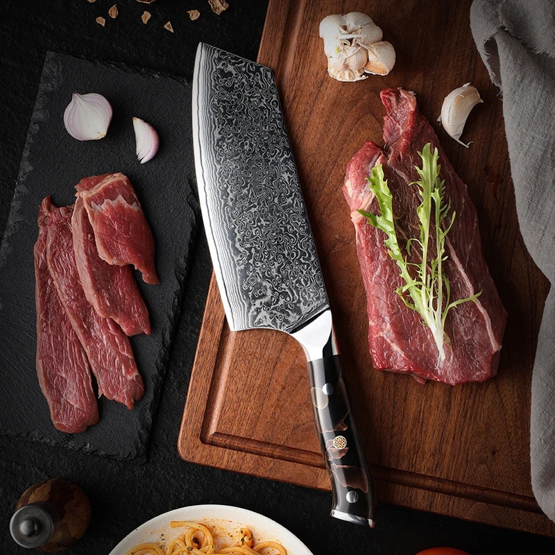 アマゾンの新型ダマスカス鋼コックナイフキッチン家庭用三徳ナイフ鋭利なおかず切り肉ナイフ国境を越えた