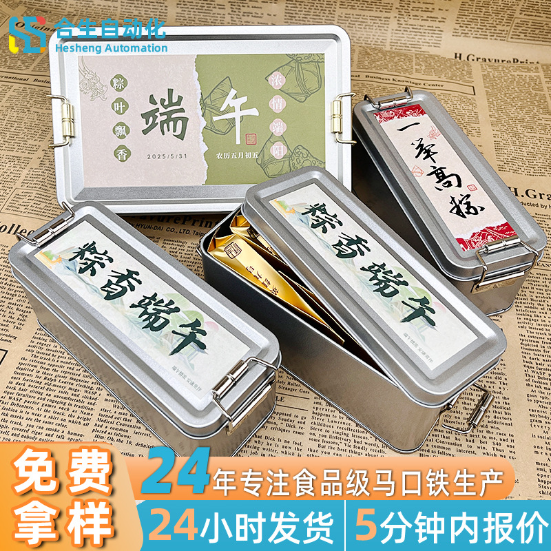 レトロな茶バックル小さな鉄箱長方形端午節団子スライドバックル鉄箱包装パイナップルケーキお土産鉄箱