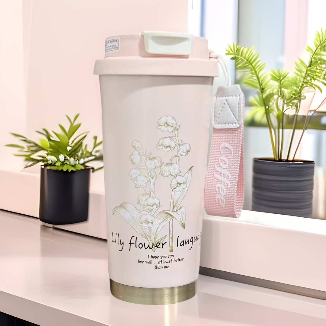 新型すずらん保温カップ316ステンレスコーヒーカップ女子大容量高颜値ストローコップギフトカップ