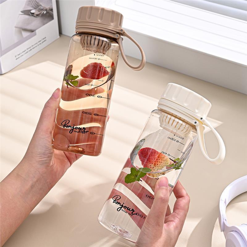 シンプルな高颜値提縄プラスチックカップとティーフィルター付きストレートカップの女性がカップを持っている屋外スポーツカップ