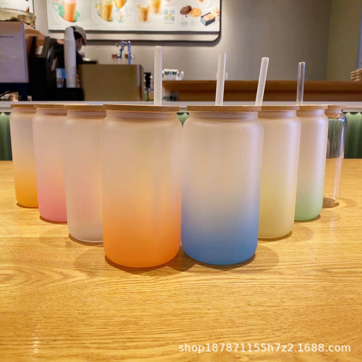 新型の熱昇華単層の厚いつや消しグラデーションの高ホウ素シリコンのガラス缶のコップの竹の蓋のストローの屋外の卸売り