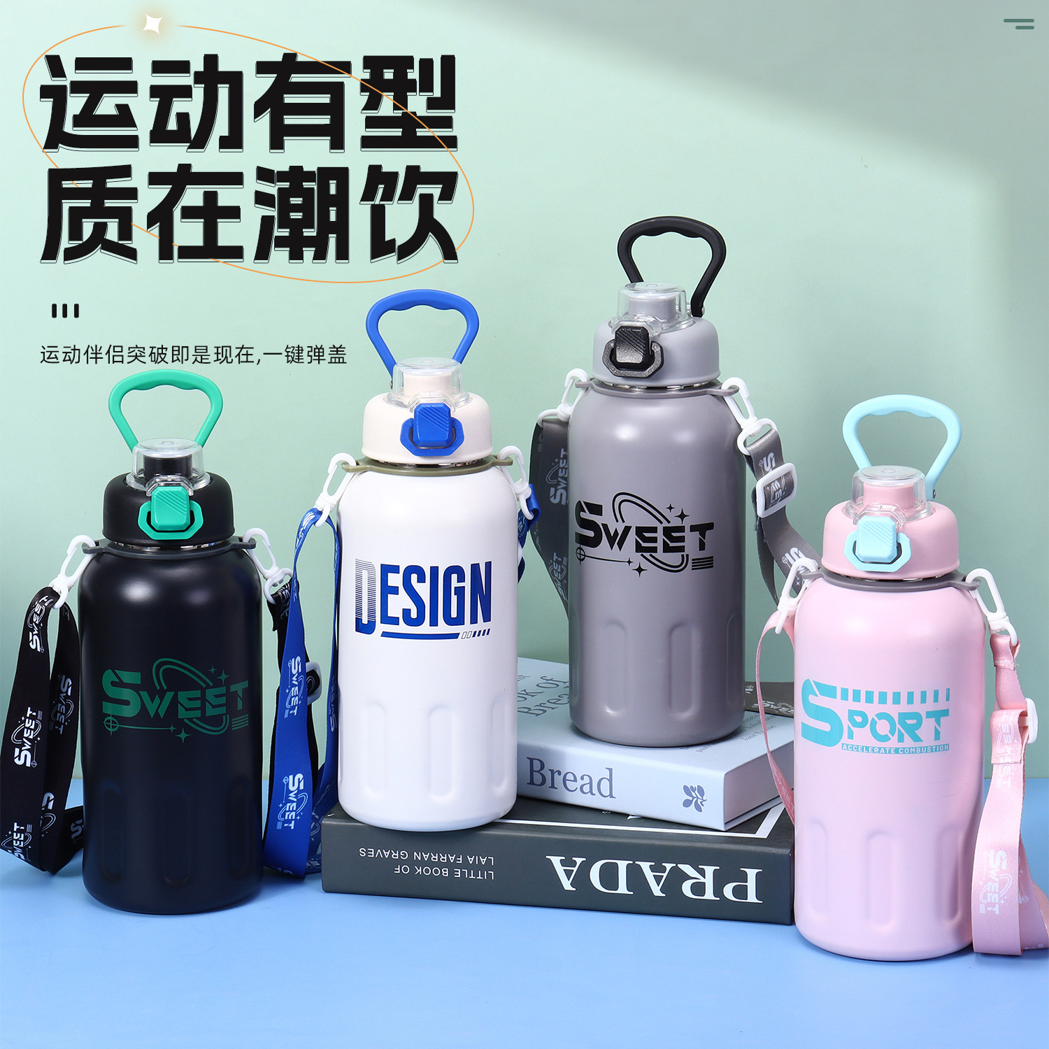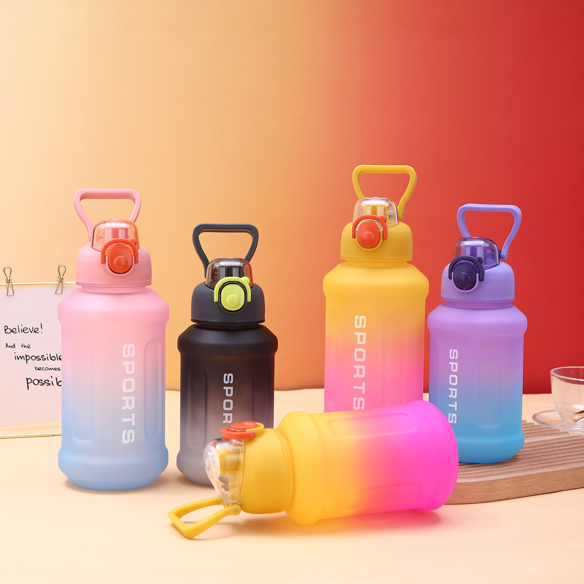 大容量グラデーショントンバレル屋外携帯スポーツ水筒高颜値ベルトリングバウンスプラスチックライドカップ