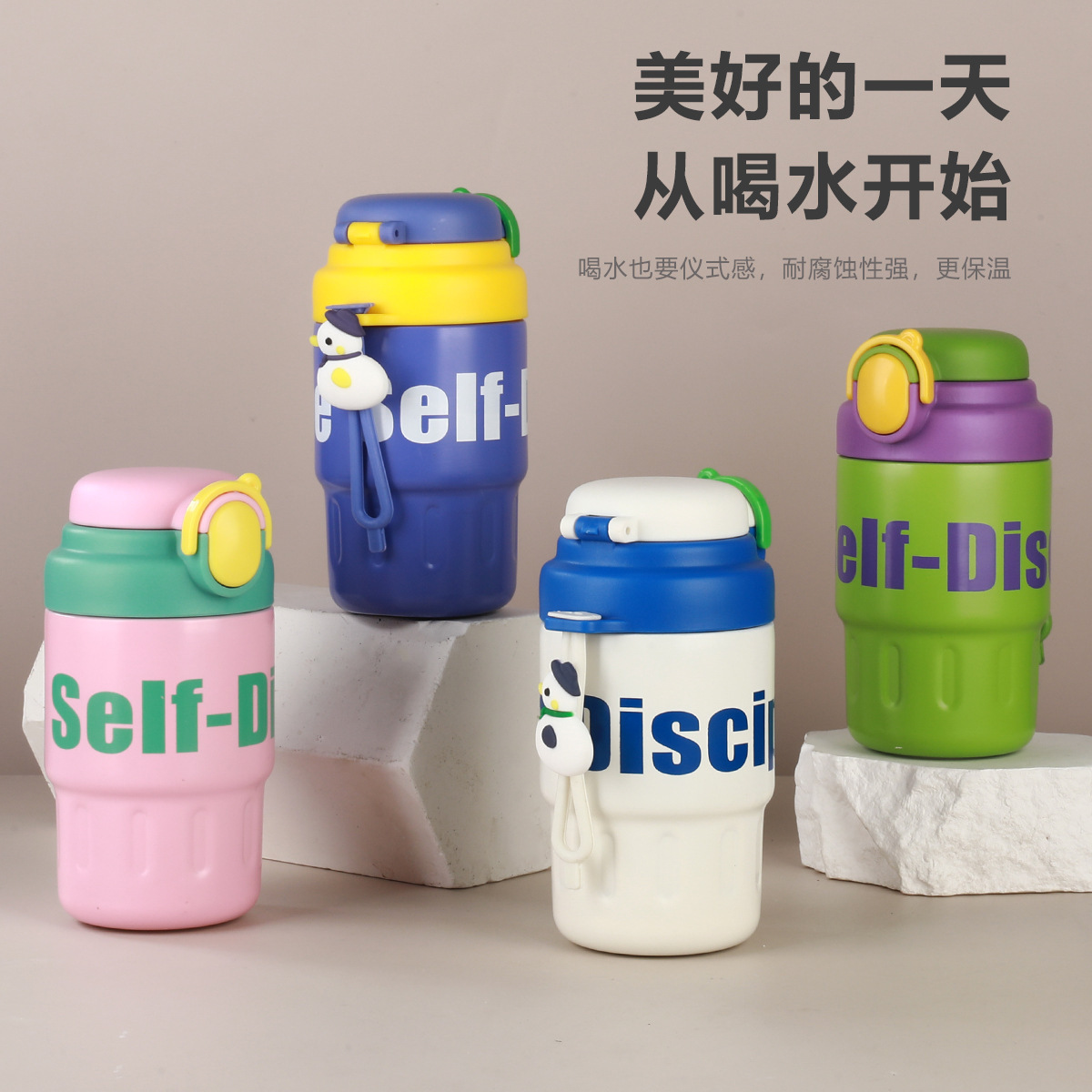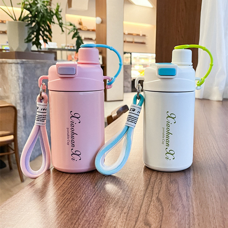 新保温ポット大容量316ステンレスギフトカップ女子高颜値児童ストロー携帯大腹カップ