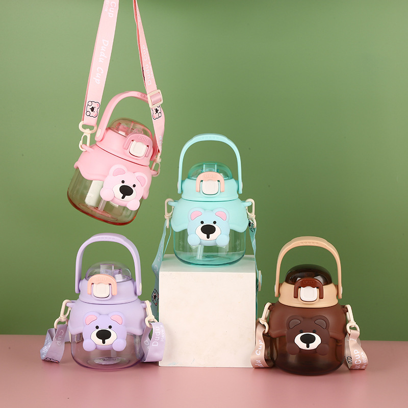 高颜値学生水杯ネット赤ストロー携帯アニメ大腹プラスチックカップ大容量ロープ運動水筒
