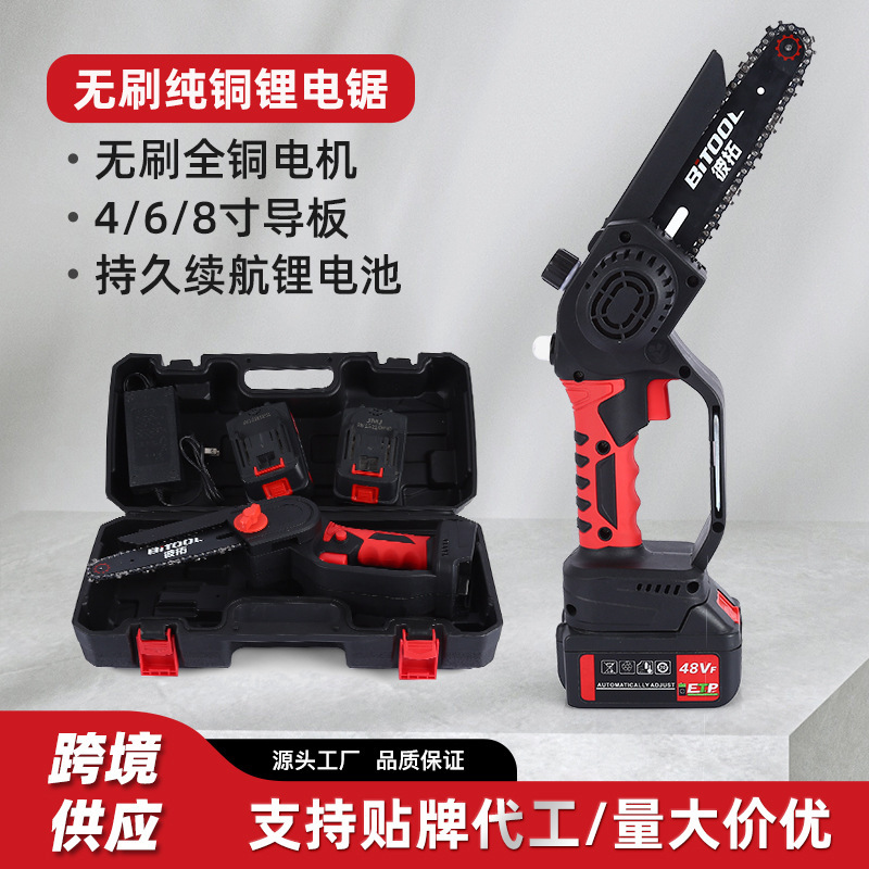 家庭用4インチ6インチ充電無線ミニチェーンソー片手大工鋸園林伐採鋸リチウムチェーンソー卸売り