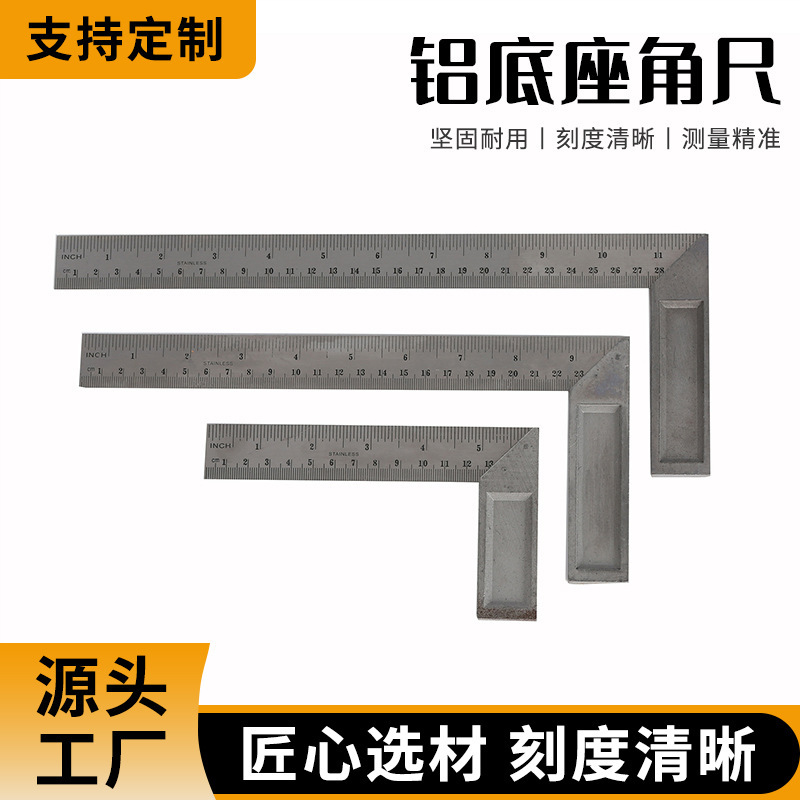 卸売り黄色アルミベース黄漆角尺8インチ300mm黄漆角尺棒鋼帯木工泥直角尺