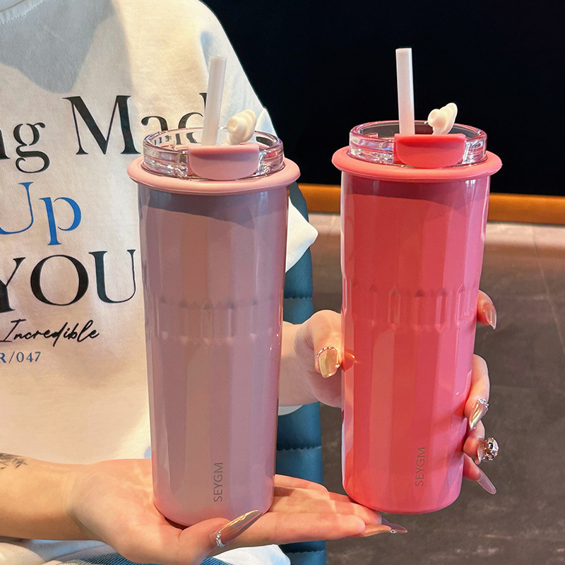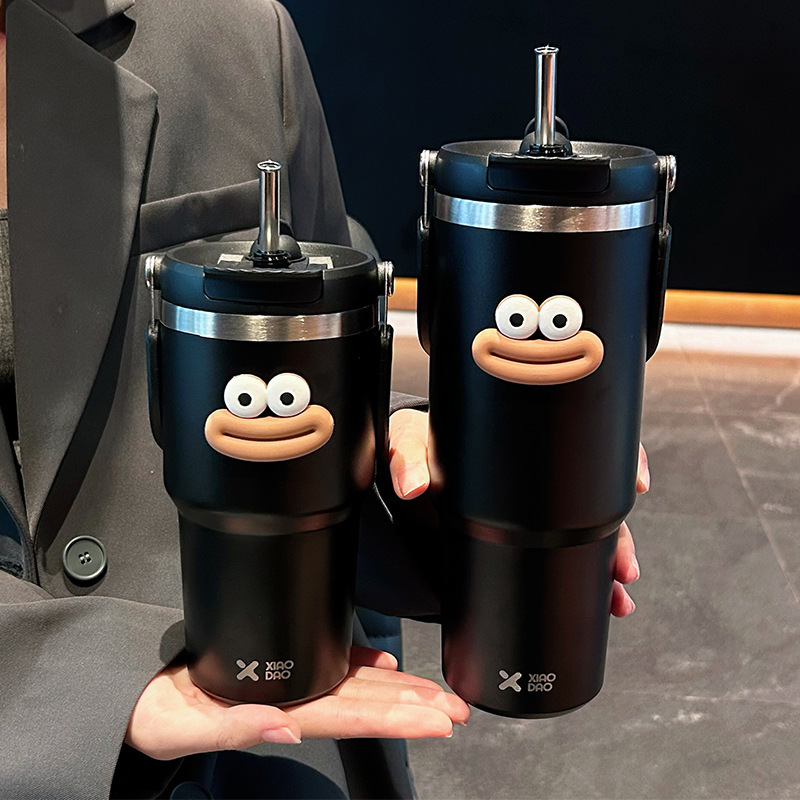 大容量304ステンレス保温カップ創意携帯ストローカップ高颜値透明蓋コーヒーカップ随行カップ