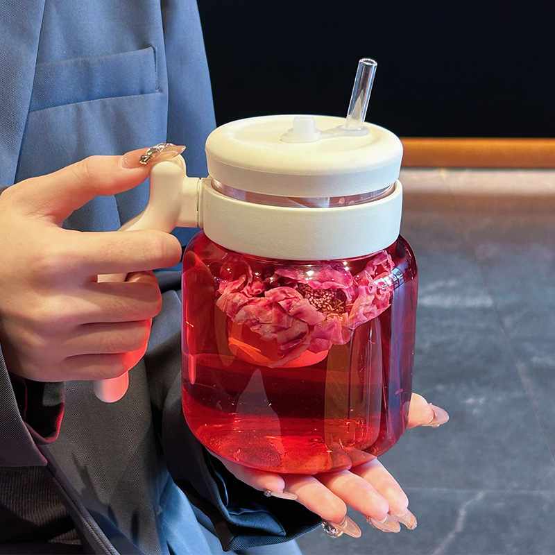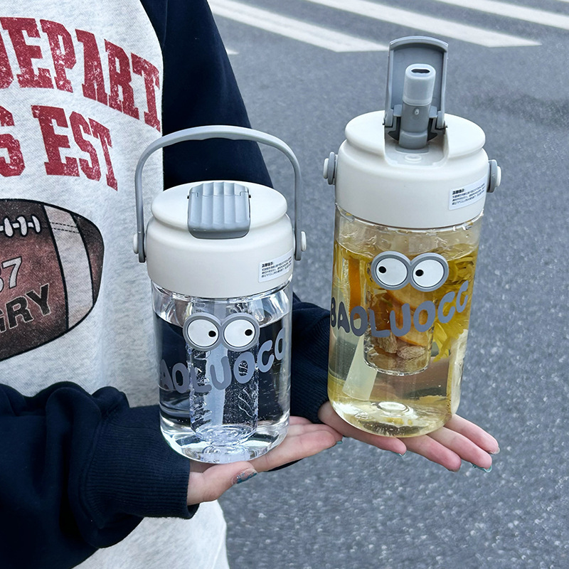 食品グレード花茶プラスチックカップ大容量ストローカップ子供用高颜値ハンドルカップお茶分离カップ卸売