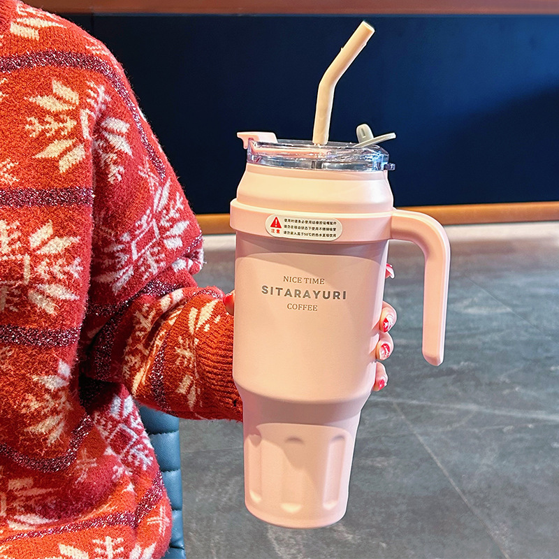 家庭用氷覇カップ手持ちダブルドリンク大容量304ステンレス車載保温カップストロー付き保冷コーヒーカップ