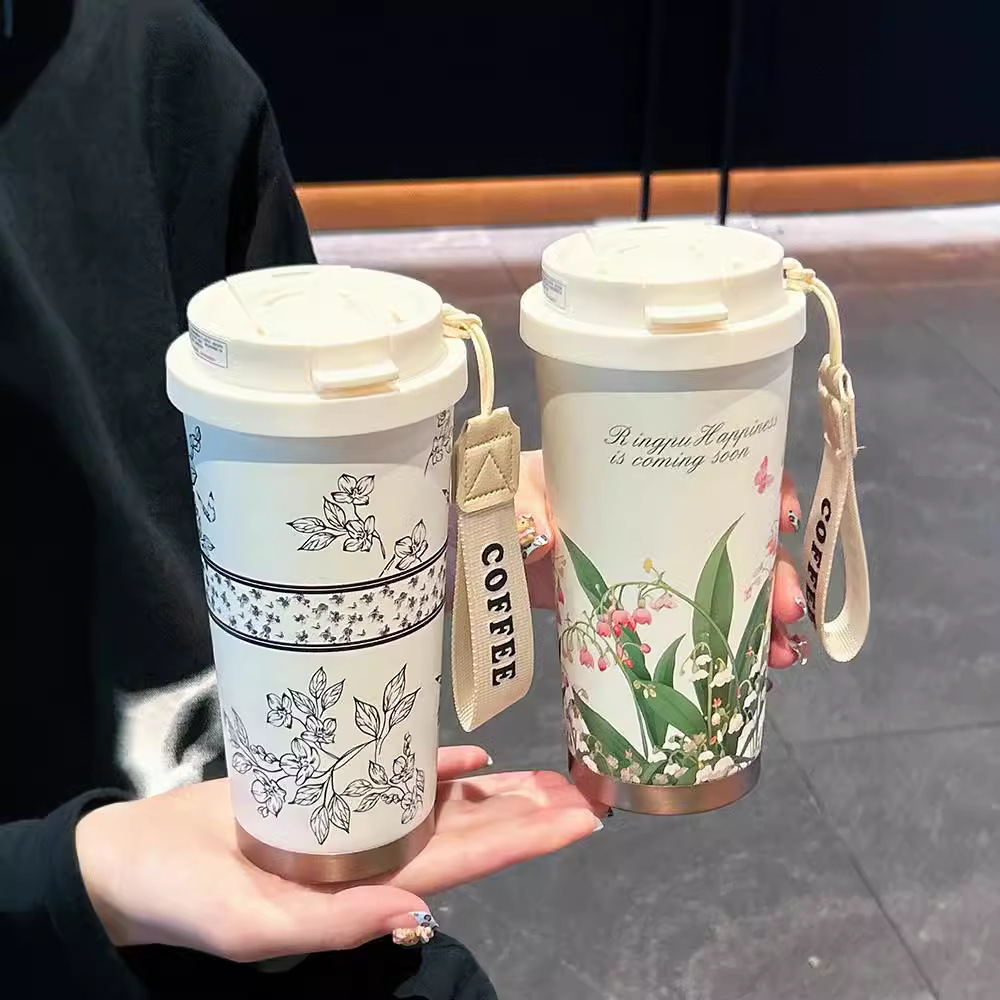 すずらん保温カップ304ステンレスコーヒーカップ高颜値茶水分離カップ陶磁器内胆ストローカップ卸売り