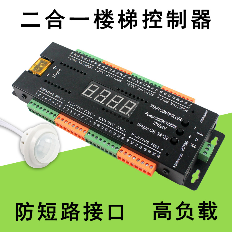 短絡防止階段コントローラ12V24V32路二合一階段ステップランプ流水追光知能コントローラ