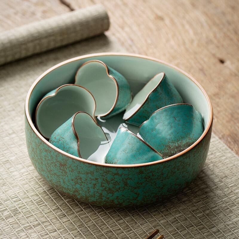 窯が青々とした緑のティーポットの側になって、古い家庭の工夫に似せて茶器を浸して、手の工夫にティーポットを入れて復古した