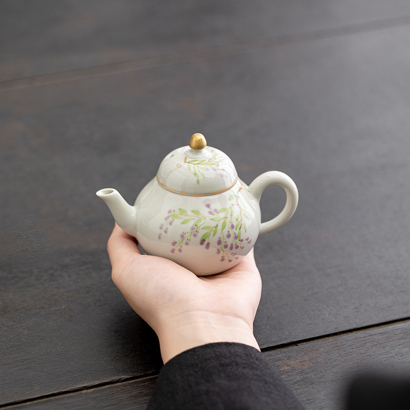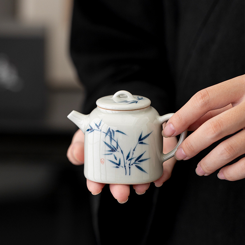 墨竹紺青ティーポット洗練された手描きミニ泡茶家庭用陶磁器日本式シングル高級泡ティーポット茶器