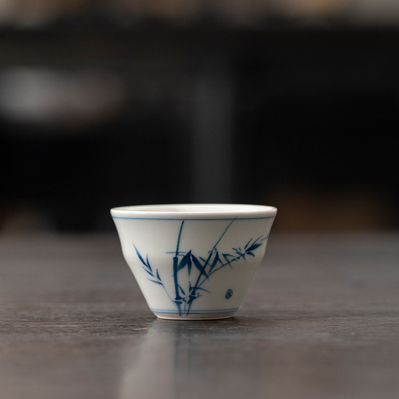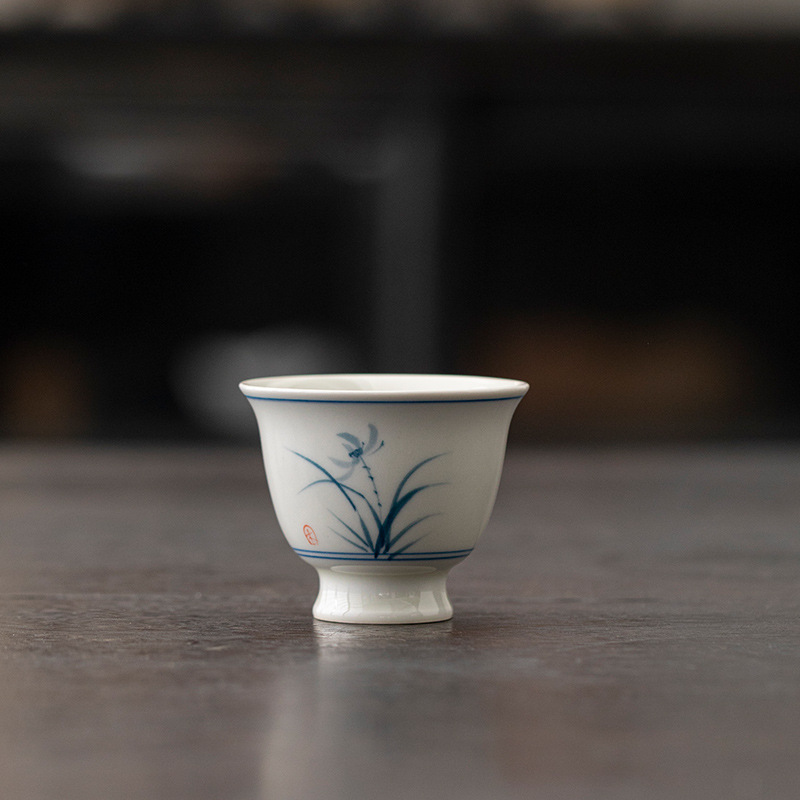 蘭青墨小茶杯陶磁器創意釉薬下彩家庭用手描き茶杯セットお茶専用主人杯
