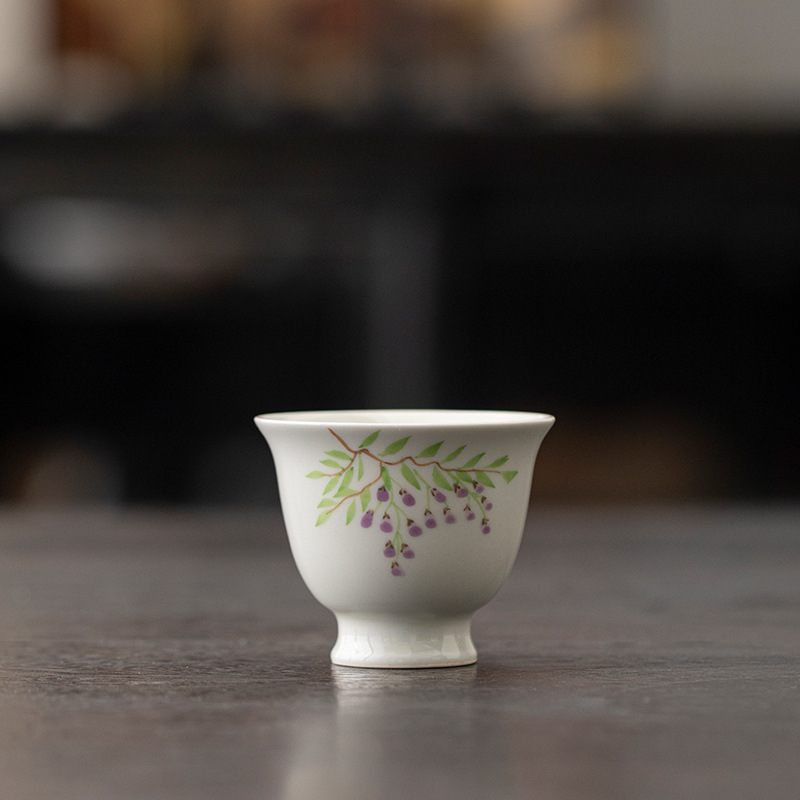 藤の花の高い足の主人の杯の杯の陶磁器の手描きの日本式のアイデアの単一の工夫のお茶の碗はお茶の杯を飲みます。