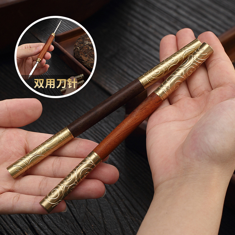 金のフープの純粋な手作りの銅のステンレスのプーアル茶餅の実木の茶の刀は茶の刀の茶の針の茶の錐の茶道の部品を開けます。
