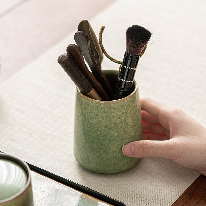 窯変翠緑六君子茶道泡茶道具茶針茶刀養壺筆陶磁器茶筒茶器部品セット