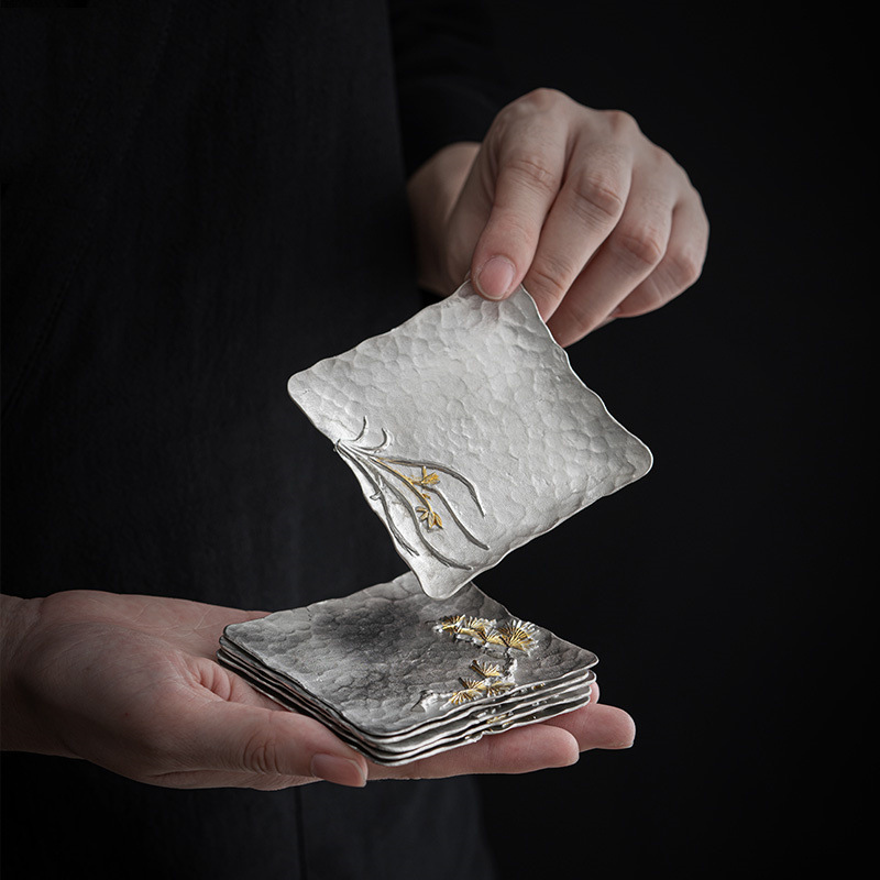 レトロなコースターの茶托の中国式の工夫の茶器の部品の純粋な錫は茶のマットの金属の断熱のクッションのハンマーの紋様の杯を作ります。