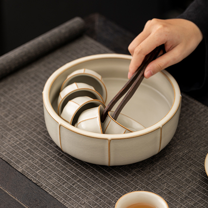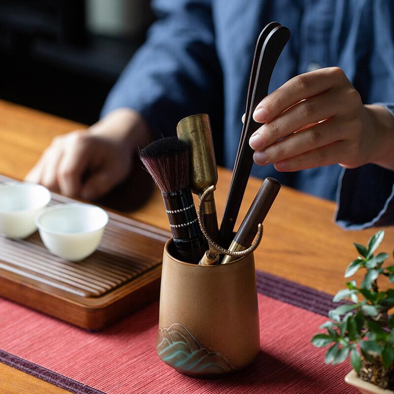 窯変陶磁器六君子茶道筒カンフー茶道具黒檀六点セット茶こし茶こし茶さじ挟み部品