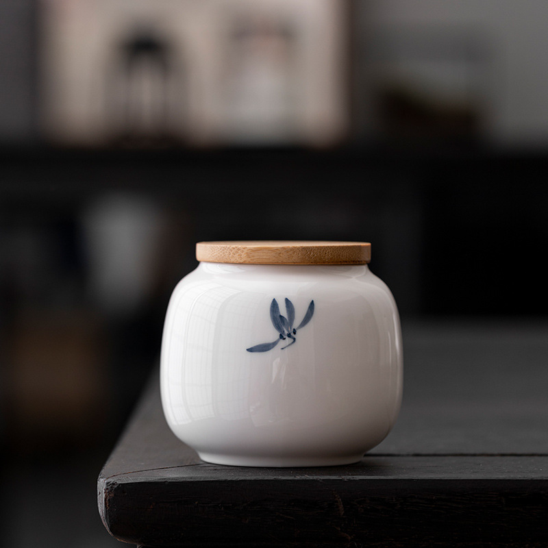 蝶蘭茶葉缶日本式白磁新商品手描き防湿蓋付き密封缶工夫プーアル貯蔵茶箱
