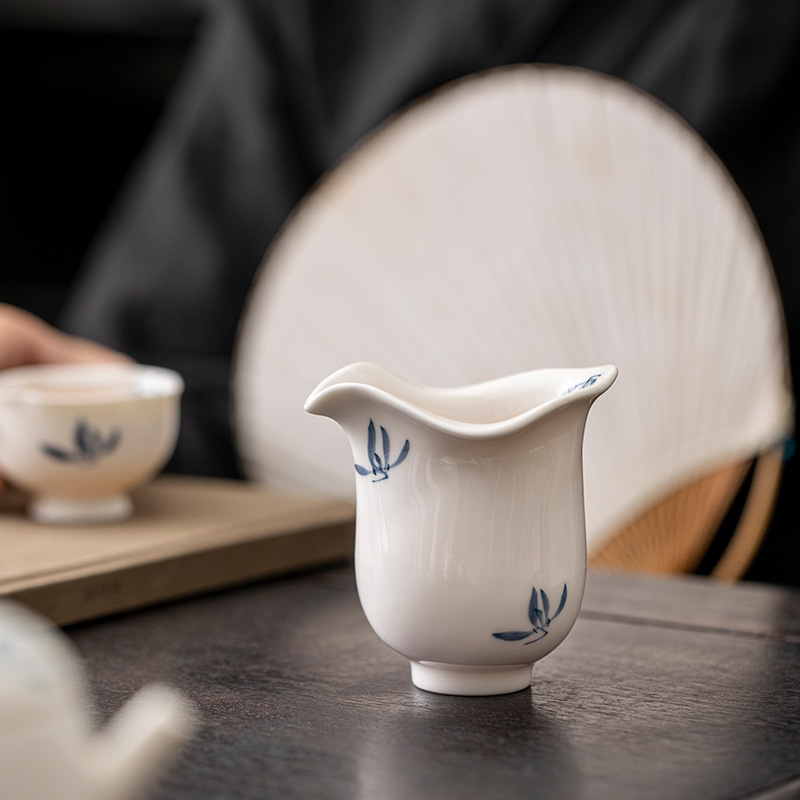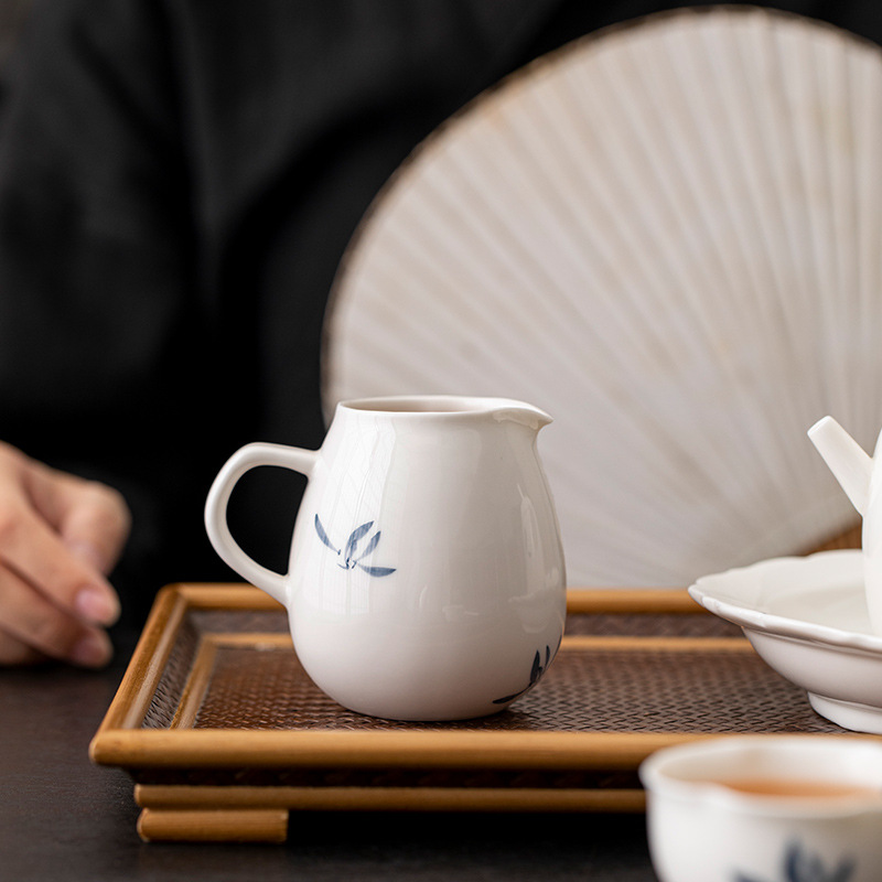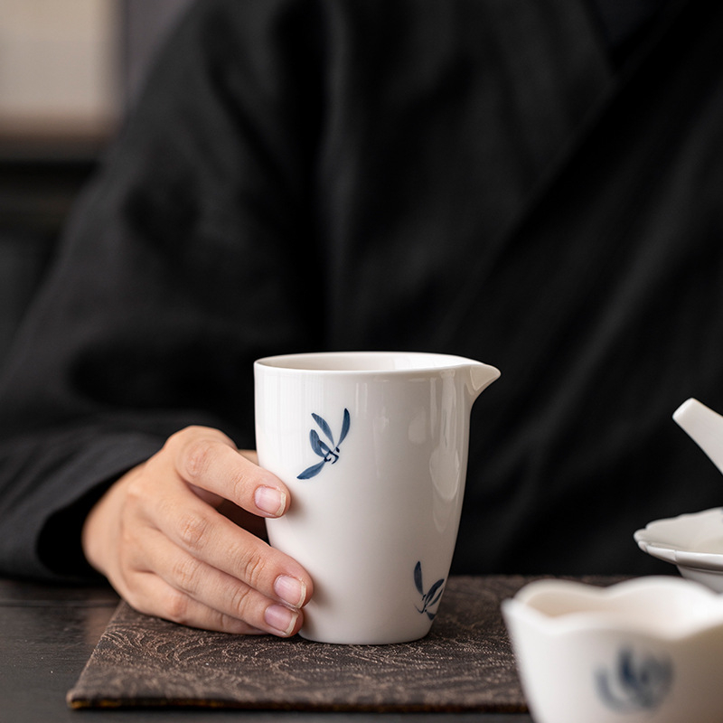 蝶蘭公道杯茶海工夫茶道具白磁日本式防熱耳柄手描き家庭用茶器公杯