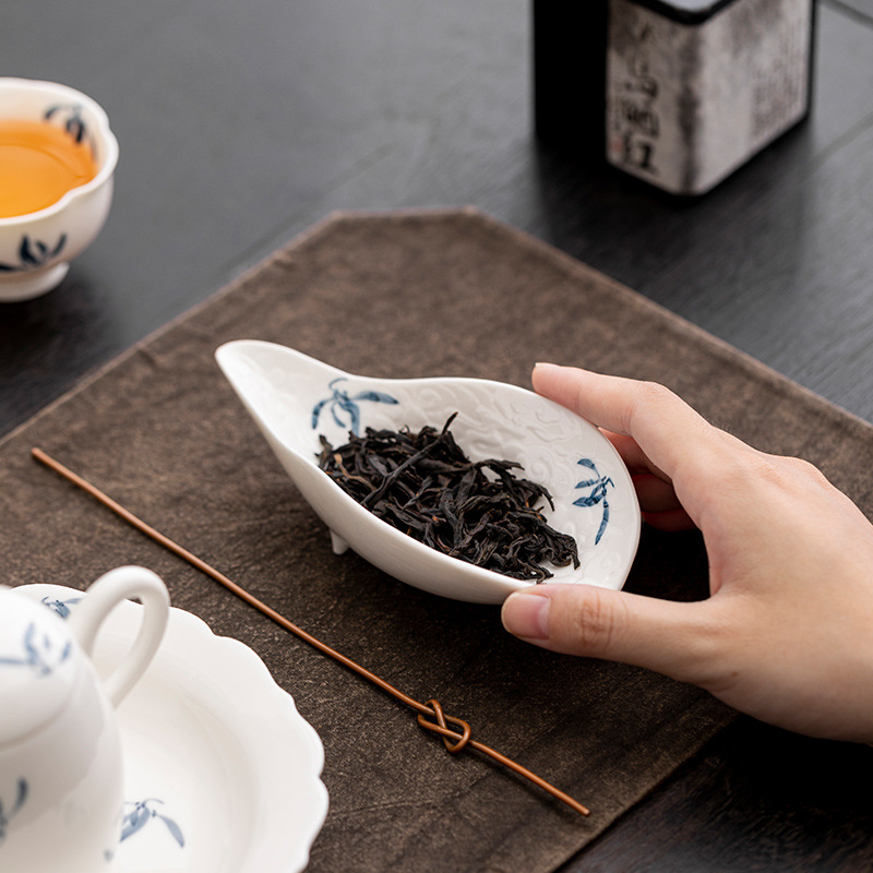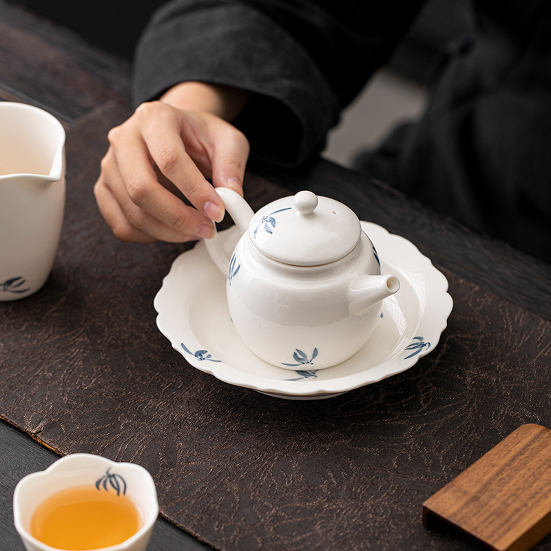 蘭の手描きの鑑賞茶は日本式の家庭用創意の白磁の高級な工夫の茶器のお茶の荷のお茶を頼んで茶器の部品を分けます。