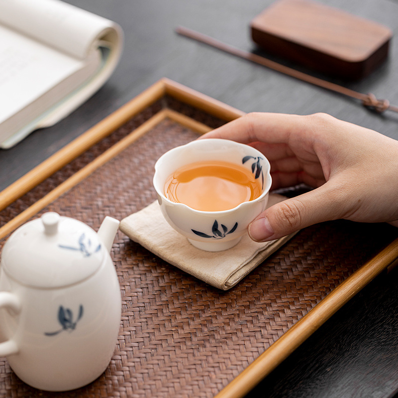 白磁の蘭のお茶の杯の2023新型の日本式の手描きの家庭の接客の高級な小さいサイズのシングルカップの主人の杯