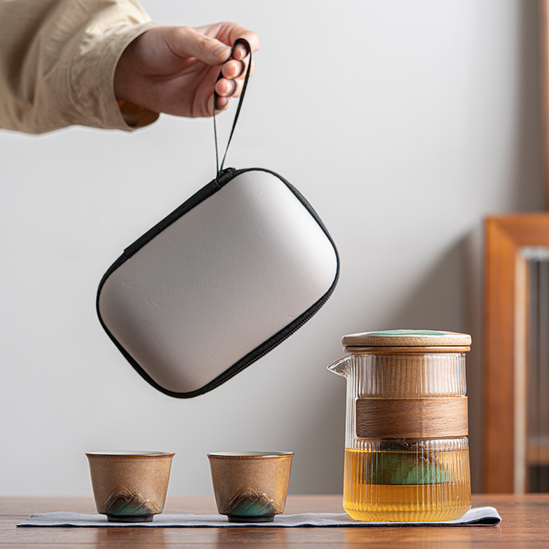 蒼山窯変ガラス快客杯携帯一壺二杯セット屋外キャンプ茶旅行茶器