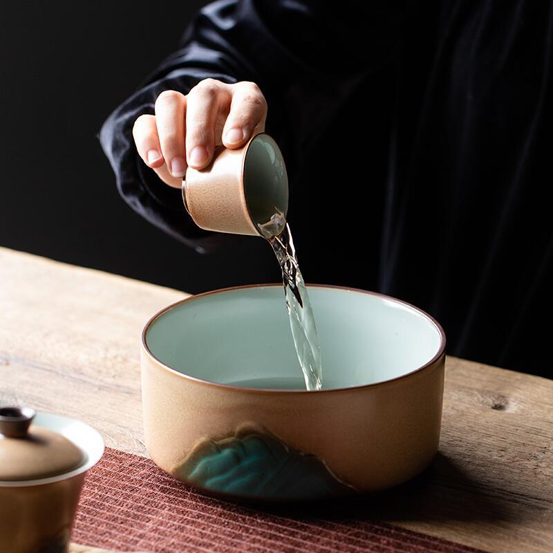 窯変遠山行茶洗日本式陶磁器水洗い茶碗筆洗杯洗大サイズ茶道部品茶かすかめ建水
